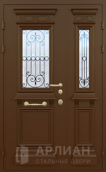 Стальная двухстворчатая дверь остекленная с ковкой снаружи №14