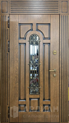 Парадная металлическая дверь с остеклением фрамугой №15