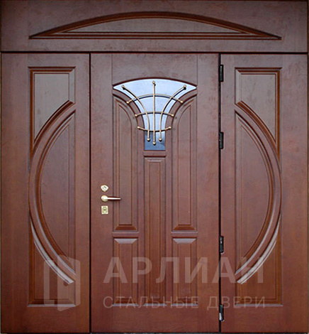 Парадная дверь с золотой патиной и фрамугой №408