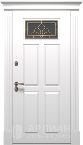 Металлическая входная дверь в коттедж с верхней фрамугой №10