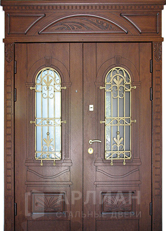 Большая дверь для загородного дома со стеклянными вставками №5
